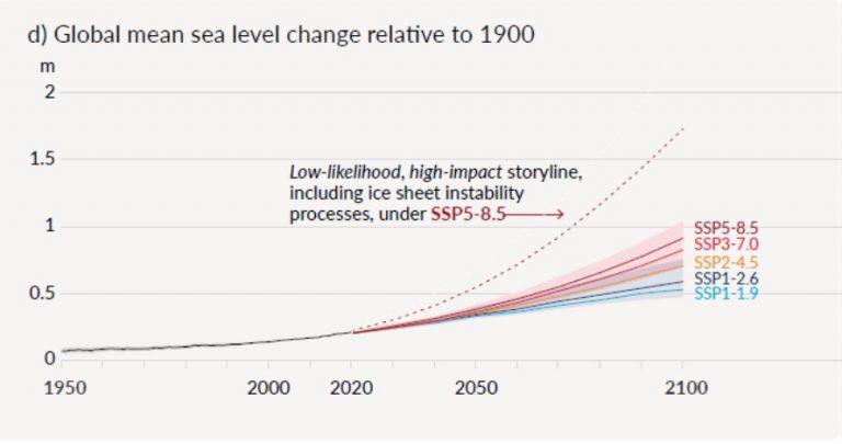 Referentie voor de mondiale gegevens en scenario’s: Special Report on the Ocean and Cryosphere in a Changing Climate (IPCC, september 2019; https://www.ipcc.ch/srocc/)